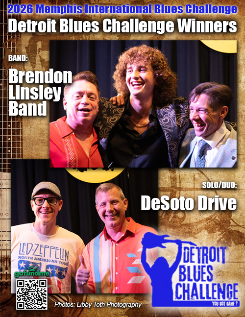 Brendon Linsley Band and DeSoto Drive are winners of the Detroit Blues Challenge and will be traveling to Memphis for the International Blues Challenge in January of 2026!